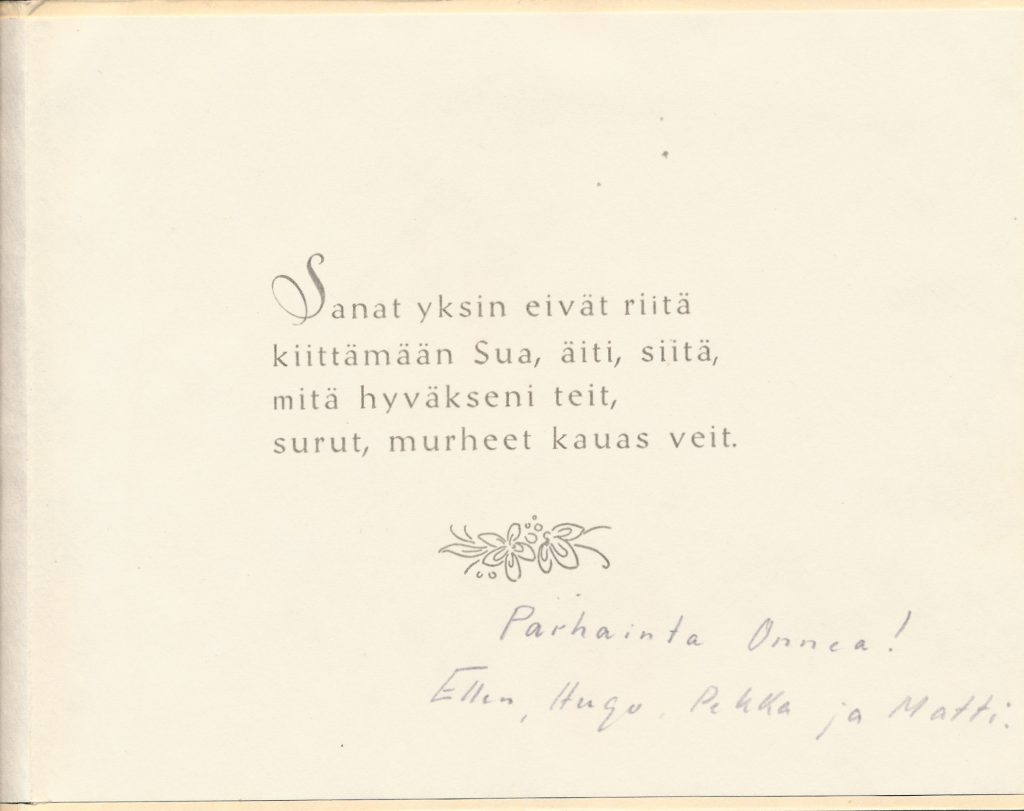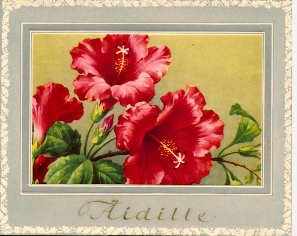 Hyvää tulevaa äitienpäivää 12.5. Tämän kortin isä lähetti äidilleen vuosien 1954 ja 1958 välisenä aikana .